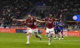 Pemain AC Milan Matteo Gabbia bersama rekan timnya melakukan selebrasi seusai mencetak gol ke gawang Inter Milan pada pertandingan sepak bola Serie A Italia di Stadion Giuseppe Meazza, Milan, Ahad (22/9/2024). AC Milan berhasil mengalahkan Inter Milan pada Derby Della Madonnina dengan skor 2-1. Gol AC Milan dicetak Christian Pulisic di menit ke-10 dan Matteo Gabbia menit ke-89. Satu gol Inter dicetak oleh Federico Dimarco di menit ke-27. (FOTO : EPA-EFE/MATTEO BAZZI)