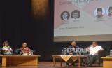 Pasangan Calon Gubernur dan Wakil Gubernur Jakarta Pramono Anung dan Rano Karno saat mengikuti dialog publik di Teater Kecil Taman Ismail Marzuki (TIM), Jakarta, Senin (23/9/2024). Dewan Kesenian Jakarta (DKJ) menyelenggarakan dialog publik dan penyampaian aspirasi para pegiat seni bersama Calon Gubernur dan Calon Wakil Gubernur Jakarta dengan tajuk Seni dan Budaya Sebagai Pilar Pengembangan Jakarta Kota Global. Kegiatan ini mengajak para calon untuk mendengarkan temuan-temuan lapangan para pegiat seni tentang bagaimana seni dan budaya akan berperan dalam pembangunan kota global Jakarta. (FOTO : Republika/Prayogi)