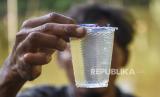 REPUBLIKA.CO.ID, SAMARINDA -- Seorang warga menunjukkan air dari kolam di kawasan jalan AW Syahrani, gang Pandan Mekar Dalam, RT 34, Kelurahan Air Hitam, Kecamatan Samarinda Ulu, Samarinda, Kalimantan Timur, Senin (23/9/2024).