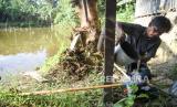 Seorang warga membetulkan pipa yang berada di kolam kawasan jalan AW Syahrani, gang Pandan Mekar Dalam, RT 34, Kelurahan Air Hitam, Kecamatan Samarinda Ulu, Samarinda, Kalimantan Timur, Senin (23/9/2024). Menurut Ali yang telah menetap 10 tahun di kawasan itu, ada sekitar 40 rumah yang belum pernah merasakan pelayanan air bersih dari Perusahaan umum daerah air minum (Perumdam) terpaksa memanfaatkan dari kolam alami tersebut untuk mencuci bahkan mandi. (FOTO : ANTARA FOTO/M Risyal Hidayat)