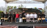 Ketua Komisi Independen Pemilihan (KIP) kabupaten Aceh Besar Khairun Salim (tengah) didampingi empat pasangan calon bupati dan calon wakil bupati dan anggota Pengawas Pemilihan (Panwaslih) membacakan naskah saat Deklarasi Kampanye Damai Pilkada tahun 2024 di kota Jantho, kabupaten Aceh Besar, Aceh, Senin (23/9/2024). Deklarasi empat pasangan calon bupati dan wakil bupati kabupaten Aceh Besar itu sebagai kesepakatan dan komitmen bersama untuk melaksanakan kampanye damai pada Pilkada serentak 2024. (FOTO : ANTARA FOTO/Ampelsa)