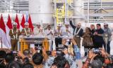 REPUBLIKA.CO.ID, GRESIK -- Presiden Joko Widodo didampingi Menteri BUMN Erick Thohir, Menteri ESDM Bahlil Lahadalia, Menteri Investasi Rosan Roeslani, Pj Gubernur Jatim Adhy Karyono, Pj Gubernur Papua Tengah Ribka Haluk, Presiden Direktur PT Freeport Indonesia Tony Wenas, Chairman of the Board and Chief Executive Officer Freeport McMoran Richard C Adkerson, President Freeport McMoran Inc Kathleen L Quirk, dan Wakil Ketua DPR 2014-2019 Fahri Hamzah, dan Bupati Gresik Fandi Akhmad Yani menekan tombol saat Peresmian Produksi Smelter PT Freeport Indonesia (PTFI) di Smelter PTFI, Kawasan Ekonomi Khusus (KEK) Gresik, Jawa Timur, Senin (23/9/2024).