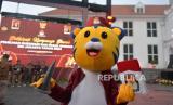 Maskot Pilkada Jakarta terlihat saat deklarasi kampanye damai untuk Pilgub Jakarta 2024 di Museum Fatahilah, Kota Tua, Jakarta, Selasa (24/09/2024). Ketiga pasangan peserta Pilgub DKI Jakarta dan partai-partai pengusungnya sepakat mewujudkan pemilihan yang aman, tertib, dan damai, serta berintegritas tanpa hoaks, tanpa politisasi SARA, dan tanpa politik uang. (FOTO : Republika/Edwin Dwi Putranto)