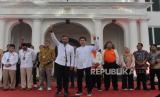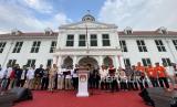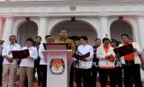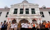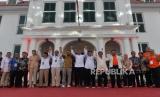 REPUBLIKA.CO.ID, JAKARTA -- Ketua KPU Provinsi Jakarta Wahyu Dinata bersama cagub-cawagub DKI Jakarta nomor urut 1 Ridwan Kamil-Suswono, cagub-cawagub nomor urut 2 Dharma Pongrekun-Kun Wardana, dan cagub-cawagub nomor urut 3 Pramono Anung-Rano Karno mengikuti deklarasi kampanye damai untuk Pilgub Jakarta 2024 di Museum Fatahilah, Kota Tua, Jakarta, Selasa (24/09/2024).