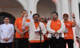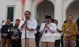 Cagub-cawagub DKI Jakarta nomor urut 1 Ridwan Kamil-Suswono memberikan orasi saat deklarasi kampanye damai untuk Pilgub Jakarta 2024 di Museum Fatahilah, Kota Tua, Jakarta, Selasa (24/09/2024). Ketiga pasangan peserta Pilgub DKI Jakarta dan partai-partai pengusungnya sepakat mewujudkan pemilihan yang aman, tertib, dan damai, serta berintegritas tanpa hoaks, tanpa politisasi SARA, dan tanpa politik uang. (FOTO : Republika/Edwin Dwi Putranto)