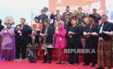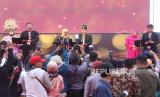 REPUBLIKA.CO.ID, SURABAYA -- Pasangan cagub-cawagub Jawa Timur nomor urut satu Luluk Nur Hamidah dan Lukmanul Khakim, pasangan nomor urut dua Khofifah Indar Parawansa dan Emil Elestianto Dardak dan pasangan nomor urut tiga Tri Rismaharini dan Zahrul Azhar Asumta membacakan teks delarasi saat deklarasi kampanye damai Pilkada Jawa Timur 2024 di Surabaya, Jawa Timur, Selasa (24/9/2024).