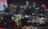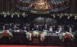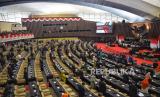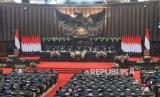 Suasana sidang akhir masa jabatan anggota MPR periode 2019-2024 di Ruang Sidang Paripurna, Kompleks Parlemen Senayan, Jakarta, Rabu (25/9/2024). MPR menggelar sidang akhir masa jabatan anggota MPR RI periode 2019-2024 dengan agenda mencakup yaitu laporan Badan Pengkajian MPR, pandangan umum fraksi, hingga penetapan keputusan MPR. Selain itu, disampaikan juga laporan pelaksanaan tugas dan wewenang, serta kinerja pimpinan MPR periode 2019-2024. (FOTO : Republika/Prayogi)