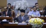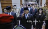 REPUBLIKA.CO.ID, JAKARTA -- Menteri Pertahanan yang juga Presiden terpilih Prabowo Subianto tiba untuk mengikuti rapat kerja dengan Komisi I DPR di Kompleks Parlemen, Senayan, Jakarta, Rabu (25/9/2024).