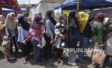REPUBLIKA.CO.ID, TASIKMALAYA -- Sejumlah warga antre saat pembagian paket sembako gratis di Indihiang, Tasikmalaya, Jawa Barat, Kamis (26/9/2024).