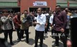 Presiden Joko Widodo mengunjungi Pasar Sanggam Adji Dilayas, Kabupaten Berau, Kalimantan Timur, Kamis (26/9/2024). Presiden Jokowi untuk pertama kalinya berkunjung ke Kabupaten Berau. Kunjungan Jokowi disambut penuh antusias oleh warga. Dalam kunjungannya ke Berau, Jokowi mengecek harga kebutuhan pokok di Pasar Sanggam Adji Dilayas dan melihat fasilitas kesehatan di RSUD Abdul Rivai. (FOTO : Republika/Edwin Dwi Putranto)
