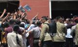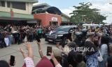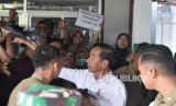 Warga menyambut antusias kehadiran Presiden Joko Widodo saat mengunjungi RSUD Abdul Rivai, Kabupaten Berau, Kalimantan Timur, Kamis (26/9/2024). Presiden Jokowi untuk pertama kalinya berkunjung ke Kabupaten Berau. Kunjungan Jokowi disambut penuh antusias oleh warga. Dalam kunjungannya ke Berau, Jokowi mengecek harga kebutuhan pokok di Pasar Sanggam Adji Dilayas dan melihat fasilitas kesehatan di RSUD Abdul Rivai. (FOTO : Republika/Edwin Dwi Putranto)