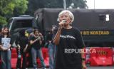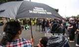 REPUBLIKA.CO.ID, JAKARTA -- Sejumlah aktivis Jaringan Solidaritas Korban untuk Keadilan mengikuti Aksi Kamisan ke-833 di seberang Istana Merdeka, Jakarta, Kamis (26/9/2024).