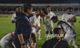 Pelatih Timnas Indonesia U-20 Indra Sjafri memberikan semangat sebelum pertandingan melawan Timnas Timor Leste U-20 pada laga Grup F Kualifikasi Piala Asia U-20 2025 di Stadion Madya, Senayan, Jakarta , Jumat (27/9/2024). Garuda Muda berhasil menang dengan Skor 3-1. (FOTO : Republika/Prayogi)