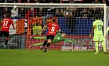 Barcelona kalah 2-4 saat bertandang ke markas Osasuna, Rekor kemenangan beruntun Barcelona pun terhenti.