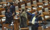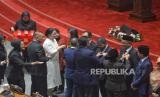 Sejumlah anggota dewan usai mengikuti rapat Paripurna Ke-8 Masa Persidangan I Tahun Sidang 2024-2025 di Kompleks Parlemen, Senayan, Jakarta, Senin (30/9/2024). Rapat paripurna tersebut merupakan rapat paripurna terakhir periode keanggotaan DPR 2019-2024. Ketua DPR RI Puan Maharani langsung memimpin rapat paripurna tersebut. (FOTO : Republika/Prayogi)
