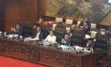 Sejumlah anggota dewan mengikuti rapat Paripurna Ke-8 Masa Persidangan I Tahun Sidang 2024-2025 di Kompleks Parlemen, Senayan, Jakarta, Senin (30/9/2024). Rapat paripurna tersebut merupakan rapat paripurna terakhir periode keanggotaan DPR 2019-2024. Ketua DPR RI Puan Maharani langsung memimpin rapat paripurna tersebut. (FOTO : Republika/Prayogi)