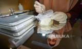 REPUBLIKA.CO.ID, PADANG -- Petugas melakukan pengecekan kandungan dalam tahu di laboratorium keliling pengawasan keamanan pangan di Padang, Sumatera Barat, Senin (30/9/2024).