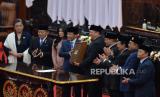 Ketua Mahkamah Agung (MA) Syarifuddin memimpin pengucapan sumpah/janji anggota dewan saat sidang awal masa jabatan anggota MPR/DPR/DPD RI Periode 2024-2029 di Ruang Sidang Paripurna, Kompleks Parlemen, Senayan, Selasa (1/10/2024). Sidang awal masa jabatan anggota MPR/DPR/DPD RI Periode 2024-2029 tersebut beragenda pembacaan sumpah atau janji anggota MPR/DPR/DPD RI Periode 2024-2029. Sebanyak 580 anggota DPR dan 152 anggota DPD resmi dilantik dan diambil sumpah jabatannya untuk masa bakti 2024-2029. (FOTO : Republika/Prayogi)