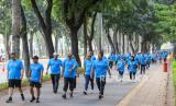 Karyawan mengikuti gerakan olahraga sambil berdonasi bernama Mitratel MOVES Bikin Bergerak, Hidup Lebih Berarti. Mitratel menganggarkan donasi sebesar 1 (satu) rupiah untuk setiap 1 (satu) langkah karyawan yang tercatat dalam MOVES, yang akan disalurkan untuk mendukung program di bidang pelestarian lingkungan, pengembangan pendidikan, dan peningkatan kesehatan. (FOTO : Dok Republika)