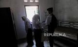 Pengunjung mengamati bangunan rumah pos komando di Monumen Pancasila Sakti di Lubang Buaya, Jakarta Timur, Selasa (1/101/204). Setiap tanggal 1 Oktober yang diperingati sebagai Hari Kesaktian Pancasila, sejumlah pelajar hingga warga terlihat ramai mengunjungi Monumen Pancasila Sakti untuk mempelajari tentang sejarah. Monumen Pancasila Sakti merupakan salah satu tempat yang menyajikan beragam diorama dan museum untuk mengenang peristiwa pasca-pemberontakan Gerakan 30 September 1965 atau (G30S/PKI) yang menjadi simbol kesaktian pancasila sebagai ideologi negara yang diperingati setiap 1 Oktober. (FOTO : Republika/Thoudy Badai)