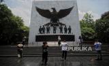 Pengunjung berfoto di Monumen Pancasila Sakti di Lubang Buaya, Jakarta Timur, Selasa (1/101/204). Setiap tanggal 1 Oktober yang diperingati sebagai Hari Kesaktian Pancasila, sejumlah pelajar hingga warga terlihat ramai mengunjungi Monumen Pancasila Sakti untuk mempelajari tentang sejarah. Monumen Pancasila Sakti merupakan salah satu tempat yang menyajikan beragam diorama dan museum untuk mengenang peristiwa pasca-pemberontakan Gerakan 30 September 1965 atau (G30S/PKI) yang menjadi simbol kesaktian pancasila sebagai ideologi negara yang diperingati setiap 1 Oktober. (FOTO : Republika/Thoudy Badai)