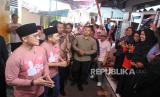 REPUBLIKA.CO.ID, JEMBER -- Ketua Umum Partai Solidaritas Indonesia (PSI) Kaesang Pangarep (kiri) bersama calon Bupati Jember nomor urut 2 Muhammad Fawait (kedua kiri) menyapa warga saat blusukan di Kecamatan Kaliwates, Jember, Jawa Timur, Selasa (1/10/2024).
