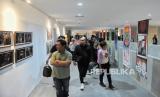 Pengunjung mengamati karya yang dipamerkan dalam pameran 50 Tahun Jakarta Biennale di Taman Ismail Marzuki, Jakarta, Selasa (1/10/2024). Jakarta Biennale merupakan perhelatan akbar seni rupa kontemporer Indonesia yang dilangsungkan setiap dua tahun sekali. Pada tahun ini, gelaran pameran tersebut digelar selama 50 hari dalam rangka merayakan 50 tahun Jakarta Biennale. Untuk diketahui, gelaran Jakarta Biennale pertama kali digagas oleh Dewan Kesenian Jakarta pada 1974 dengan nama Pameran Besar Seni Lukis Indonesia. Sejak 2009, Jakarta Biennale diselenggarakan dalam skala internasional. (FOTO : Republika/Thoudy Badai)