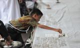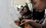 Pelajar mengikuti kegiatan workshop pembuatan batik di Museum Batik Indonesia, Taman Mini Indonesia Indah (TMII), Jakarta Timur, Rabu (2/10/2024). Kegiatan tersebut dalam rangka memperingati Hari Batik Nasional 2024 dengan memberikan edukasi bagi pelajar tentang pembuatan batik dengan teknik tulis dan cap sebagai upaya melestarikan batik. (FOTO : Republika/Thoudy Badai)