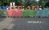 REPUBLIKA.CO.ID, BOGOR -- Sejumlah peserta membentangkan kain batik di pedestrian Kebun Raya Bogor, Jawa Barat, Rabu (2/10/2024).