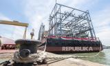 REPUBLIKA.CO.ID, SURABAYA -- Pembangkit listrik terapung atau Barge Mounted Power Plant (BMPP) Nusantara II bersandar di Dermaga Bandar Barat, Divisi Kapal Niaga PT PAL Indonesia, Surabaya, Jawa Timur, Rabu (2/10/2024).