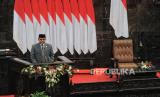 Ketua Majelis Permusyawaratan Rakyat (MPR) RI terpilih periode 2024-2029 Ahmad Muzani menyampaikan pidato pertamanya usai pelantikan pimpinan MPR RI periode 2024-2029 di gedung Nusantara, Kompleks Parlemen, Senayan, Jakarta, Kamis (3/10/2024). Sidang Paripurna MPR RI menyetujui Ahmad Muzani dari Fraksi Partai Gerindra sebagai ketua MPR RI periode 2024-2029 menggantikan Bambang Soesatyo selaku Ketua MPR RI periode 2019-2024. (FOTO : Republika/Thoudy Badai)