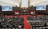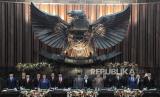 Suasana sidang paripurna pelantikan pimpinan MPR RI periode 2024-2029 di gedung Nusantara, Kompleks Parlemen, Senayan, Jakarta, Kamis (3/10/2024). Sidang Paripurna MPR RI menyetujui Ahmad Muzani dari Fraksi Partai Gerindra sebagai ketua MPR RI periode 2024-2029 menggantikan Bambang Soesatyo selaku Ketua MPR RI periode 2019-2024. (FOTO : Republika/Thoudy Badai)