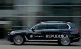 Mobil BMW X7 yang akan digunakan untuk mobilitas para VIP di gelaran Art Jakarta 2024 di JIExpo, Jakarta, Kamis (3/10/2024). BMW Indonesia menjadi VIP Mobility Partner pada Pameran Art Jakarta yang merupakan pameran seni kontemporer dengan menghadirkan karya para seniman Indonesia maupun Asia Tenggara. BMW Indonesia menampilkan tiga unit sedan listrik BMW i5 eDrive40 M Sport serta dua unit SAV mewah BMW X7 xDrive40i M Sport untuk mobilitas para VIP. (FOTO : Dok Republika)