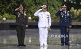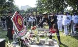 REPUBLIKA.CO.ID, JAKARTA -- Panglima TNI Jenderal TNI Agus Subiyanto (tengah) menaburkan bunga di makam Presiden ke-3 RI BJ Habibie dalam saat nasional di Taman Makam Pahlawan Nasional Utama Kalibata, Jakarta, Jumat (4/10/2024). Ziarah tersebut dalam rangka peringatan HUT Ke-79 TNI tahun 2024.
