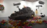 Pengunjung melihat karya seni dalam pameran Art Jakarta 2024 di JIExpo Kemayoran, Jakarta, Jumat (4/10/2024). Salah satu pameran seni terbesar di Asia Tenggara ini diikuti oleh 73 galeri dari dalam negeri hingga mancanegara yang berlangsung hingga 6 Oktober 2024. Pengunjung dapat melihat langsung hasil karya seniman yang mencerminkan berbagai sudut pandang, dari yang kontemporer hingga yang lebih tradisional. Acara ini bukan hanya untuk kolektor seni, tetapi juga untuk siapa pun yang ingin mengeksplorasi dunia seni rupa. (FOTO : Republika/Prayogi)