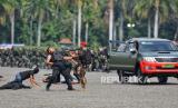 REPUBLIKA.CO.ID, JAKARTA -- Prajurit TNI menunjukkan aksi kemampuannya saat perayaan Hari Ulang Tahun (HUT) ke-79 Tentara Nasional Indonesia (TNI) di Kawasan Monas, Jakarta, Sabtu (5/10/2024).