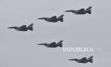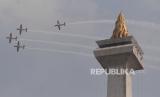 REPUBLIKA.CO.ID, JAKARTA -- Pesawat tempur TNI beraksi saat perayaan Hari Ulang Tahun (HUT) ke-79 Tentara Nasional Indonesia (TNI) di Kawasan Monas, Jakarta, Sabtu (5/10/2024).