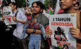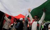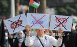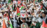 Massa aksi mengecam israel atas pembantaian yang dilakukan di Palestina.