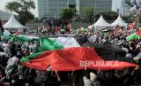 REPUBLIKA.CO.ID, JAKARTA -- Massa aksi mengikuti Aksi Palestina Merdeka di depan gedung Kedutaan Besar Amerika Serikat untuk Indonesia, Jakarta, Ahad (6/10/2024).