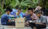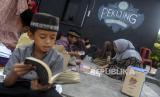 REPUBLIKA.CO.ID, SERANG -- Sejumlah anak membaca buku di area taman Kampung Pekijing, Kota Serang, Banten, Ahad (6/10/2024).