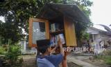 Seorang anak mengambil buku di salah satu rumah di Kampung Pekijing, Kota Serang, Banten, Ahad (6/10/2024). Warga setempat menjadikan kawasan Kampung Pekijing sebagai kampung wisata literasi yang menyediakan titik peminjaman buku di setiap rumah dan taman. (FOTO : ANTARA FOTO/Muhammad Bagus Khoirunas)