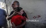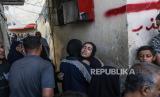 REPUBLIKA.CO.ID, GAZA -- Kerabat berduka saat pemakaman warga Palestina yang tewas dalam serangan udara Israel dini hari di kamp pengungsi Al Bureij, di Rumah Sakit Martir Al Aqsa di kota Deir Al Balah, Jalur Gaza tengah, Selasa (8/10/2024).
