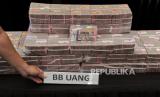 Barang bukti kasus judi online ditunjukan saat konferensi pers terkait pengungkapan kasus judi online di Bareskrim Polri, Jakarta, Selasa (8/10/2024). Dirtipidsiber Polri berhasil mengungkap kasus judi online dari situs Slot8278 yang dikendalikan oleh WNA asal China dan beroperasi di Indonesia dengan perputaran uang senilai Rp685,5 miliar. Dalam pengungkapan kasus tersebut, Bareskrim Polri menetapkan 7 tersangka dan berhasil menyita sejumlah barang bukti berupa uang tunai sebesar Rp6 miliar, 17 unit ponsel, 3 unit laptop, 1 unit ipad dan 4 unit token bank. (FOTO : Republika/Thoudy Badai)