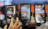 Jurnalus melakukan siaran langsung saat konferensi pers terkait pengungkapan kasus judi online di Bareskrim Polri, Jakarta, Selasa (8/10/2024). Dirtipidsiber Polri berhasil mengungkap kasus judi online dari situs Slot8278 yang dikendalikan oleh WNA asal China dan beroperasi di Indonesia dengan perputaran uang senilai Rp685,5 miliar. Dalam pengungkapan kasus tersebut, Bareskrim Polri menetapkan 7 tersangka dan berhasil menyita sejumlah barang bukti berupa uang tunai sebesar Rp6 miliar, 17 unit ponsel, 3 unit laptop, 1 unit ipad dan 4 unit token bank. (FOTO : Republika/Thoudy Badai)