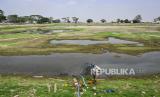 REPUBLIKA.CO.ID, TANGERANG -- Seorang petani memompa air dari Waduk Sumur Karang yang kekeringan di Kronjo, Kabupaten Tangerang, Banten, Rabu (9/10/2024).