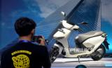 Jurnalis memotret sepeda motor listrik Honda ICON e: dan CUV e: saat peluncuran di AHM Safety Riding & Training Center Deltamas, Cikarang Pusat, Kabupaten Bekasi, Jawa Barat, Rabu (9/10/2024). AHM meluncurkan dua produk sepeda motor listrik yakni Honda ICON e: dengan tenaga maksimal 1,8 kw serta dapat menempuh jarak hingga 53 kilometer dan Honda CUV e: yang menggunakan baterai mobile power pack e dengan tenaga maksimal 6 kw serta dapat menempuh jarak 80,7 kilometer. (FOTO : Republika/Edwin Dwi Putranto)