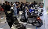 Sepeda motor listrik Honda ICON e: ditampilkan saat peluncuran di AHM Safety Riding & Training Center Deltamas, Cikarang Pusat, Kabupaten Bekasi, Jawa Barat, Rabu (9/10/2024). AHM meluncurkan dua produk sepeda motor listrik yakni Honda ICON e: dengan tenaga maksimal 1,8 kw serta dapat menempuh jarak hingga 53 kilometer dan Honda CUV e: yang menggunakan baterai mobile power pack e dengan tenaga maksimal 6 kw serta dapat menempuh jarak 80,7 kilometer. (FOTO : Republika/Edwin Dwi Putranto)