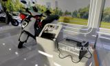 Baterai sepeda motor listrik Honda ICON e: diperlihatkan saat peluncuran di AHM Safety Riding & Training Center Deltamas, Cikarang Pusat, Kabupaten Bekasi, Jawa Barat, Rabu (9/10/2024). AHM meluncurkan dua produk sepeda motor listrik yakni Honda ICON e: dengan tenaga maksimal 1,8 kw serta dapat menempuh jarak hingga 53 kilometer dan Honda CUV e: yang menggunakan baterai mobile power pack e dengan tenaga maksimal 6 kw serta dapat menempuh jarak 80,7 kilometer. (FOTO : Republika/Edwin Dwi Putranto)