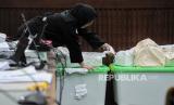 Jaksa penuntut umum merapikan barang sitaan milik terdakwa Harvey Moeis saat ditunjukan dalam sidang lanjutan di Pengadilan Tipikor, Jakarta, Kamis (10/10/2024). Sidang tersebut beragendakan pemeriksaan saksi yang dihadirkan jaksa penuntut umum dalam kasus dugaan korupsi pengelolaan tata niaga komoditas timah di wilayah izin usaha pertambangan PT Timah Tbk tahun 2015-2022. Saksi JPU menghadirkan sebanyak 13 saksi diantaranya istri dari terdakwa harvey Sandra Dewi, adik terdakwa Mira Moeis, adik dari Sandra Dewi bernama Kartika Dewi. (FOTO : Republika/Thoudy Badai)