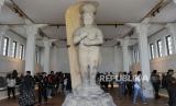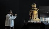 Pemandu museum menjelaskan sejarah mengenai arca Brahma saat tur pembukaan kembali Museum Nasional Indonesia, Jakarta, Jumat (11/10/2024). Museum Nasional Indonesia atau yang dikenal dengan Museum Gajah, merupakan salah satu museum tertua dan terbesar di Asia Tenggara tersebut akan kembali dibuka untuk umum pada 15 Oktober 2024 mendatang usai enam ruangan di gedung A mengalami kebakaran pada 16 Oktober tahun lalu. (FOTO : Republika/Thoudy Badai)